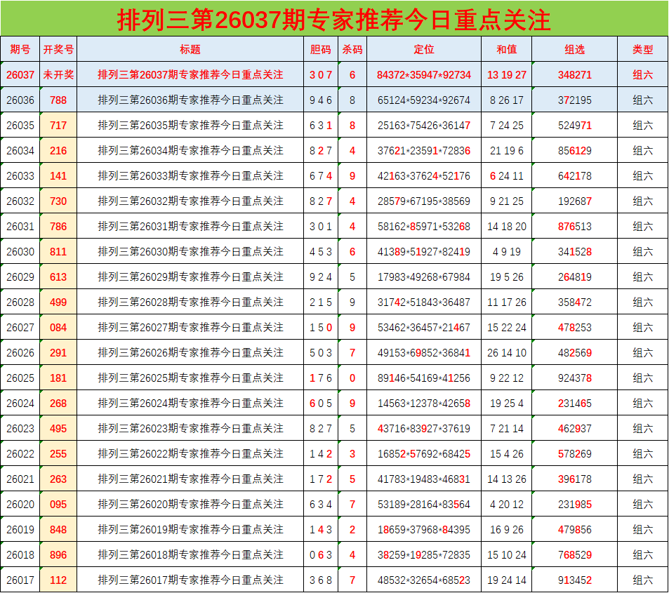 • 排列三26037期胆码预测分析 专家推荐307