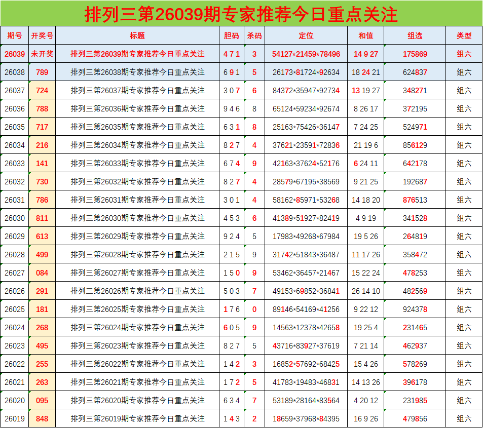 • 排列三26039期胆码预测分析 专家推荐471