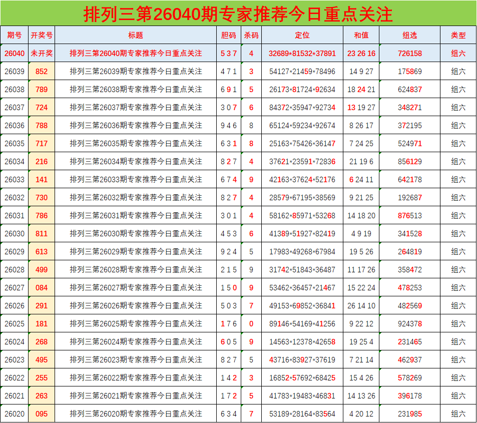 • 排列三26040期胆码预测分析 专家推荐537
