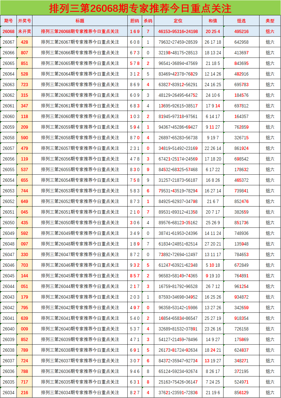 • 排列三26061期胆码预测分析 专家推荐683