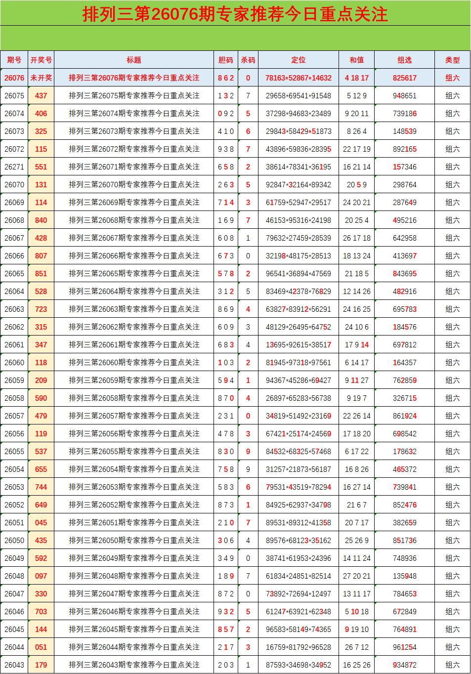 • 排列三260756期胆码预测分析 专家推荐862