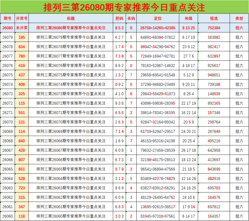 • 排列三26080期胆码预测分析 专家推荐853