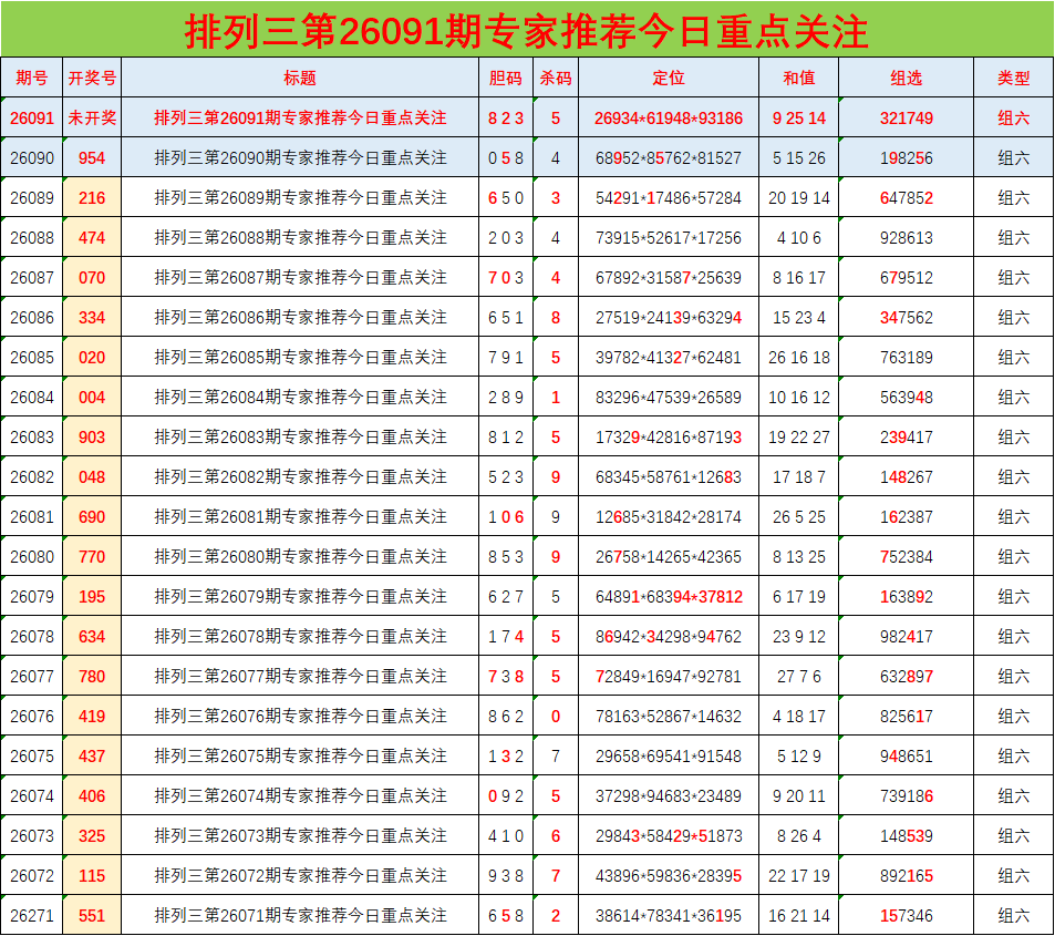 • 排列三26091期胆码预测分析 专家推荐823
