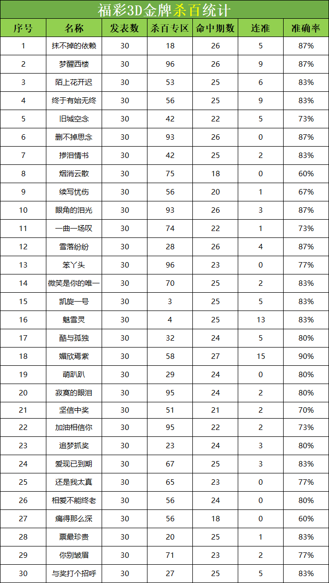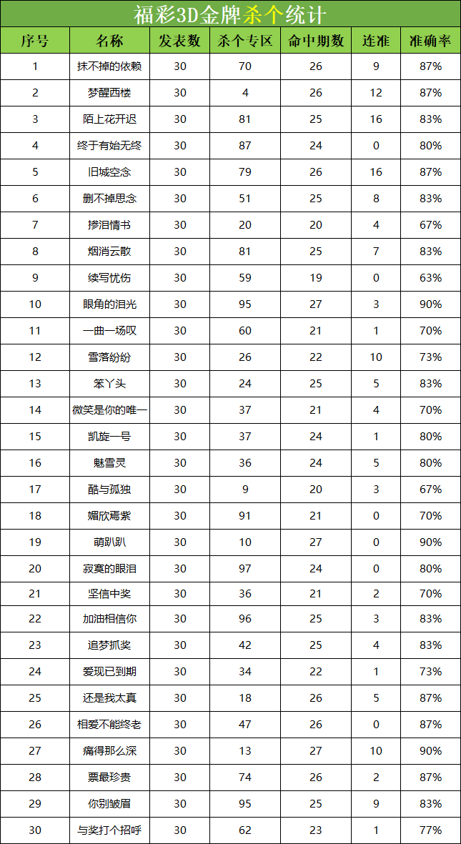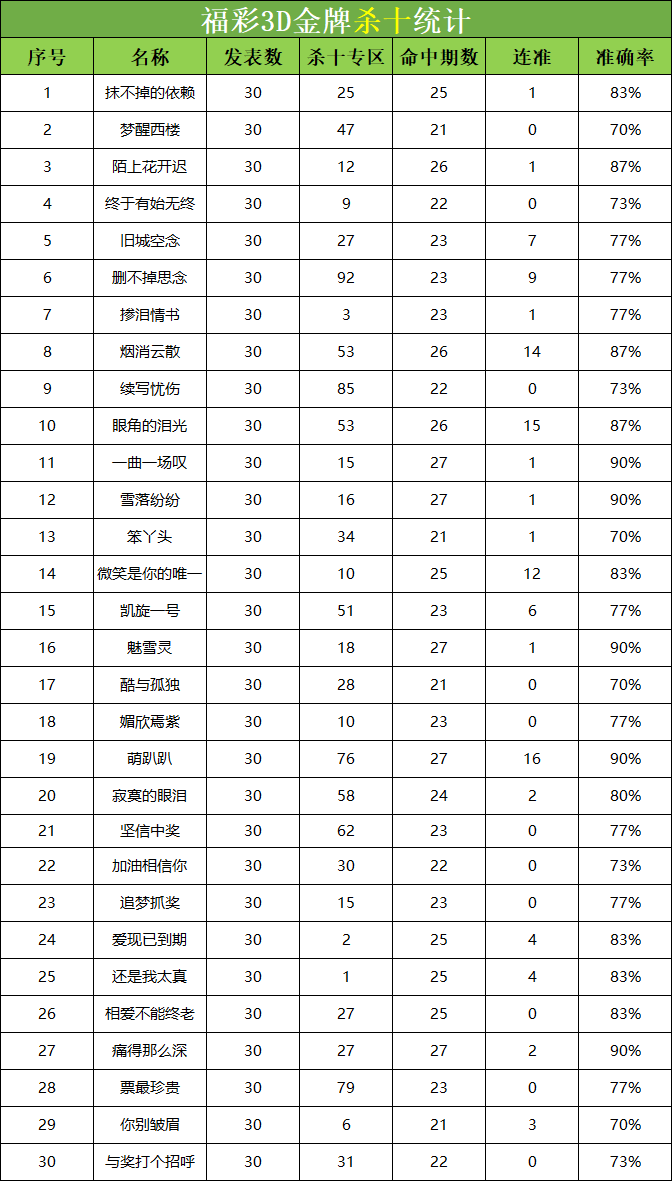 • 福彩3D 26013期杀码 杀百统计