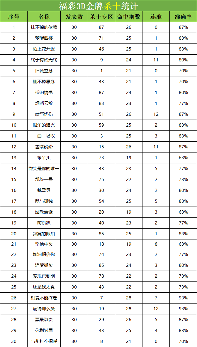 • 福彩3D 26069期杀码 杀百统计