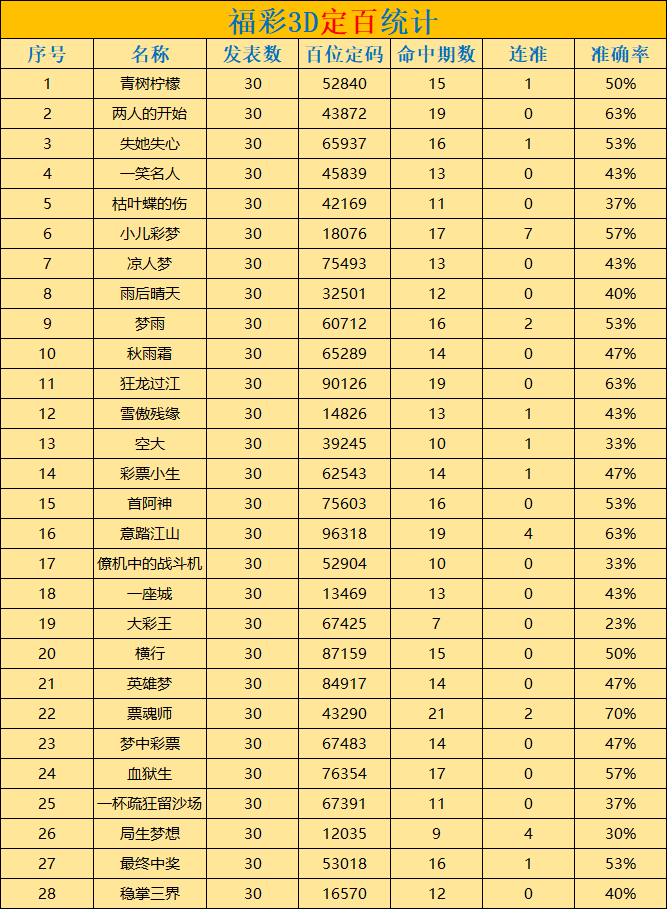 • 福彩3D 26070期定百统计图