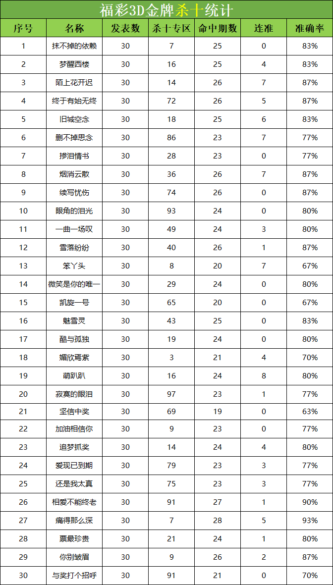 • 福彩3D 26065期杀码 杀百统计