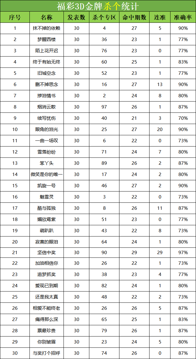 • 福彩3D 26077期杀码 杀百统计