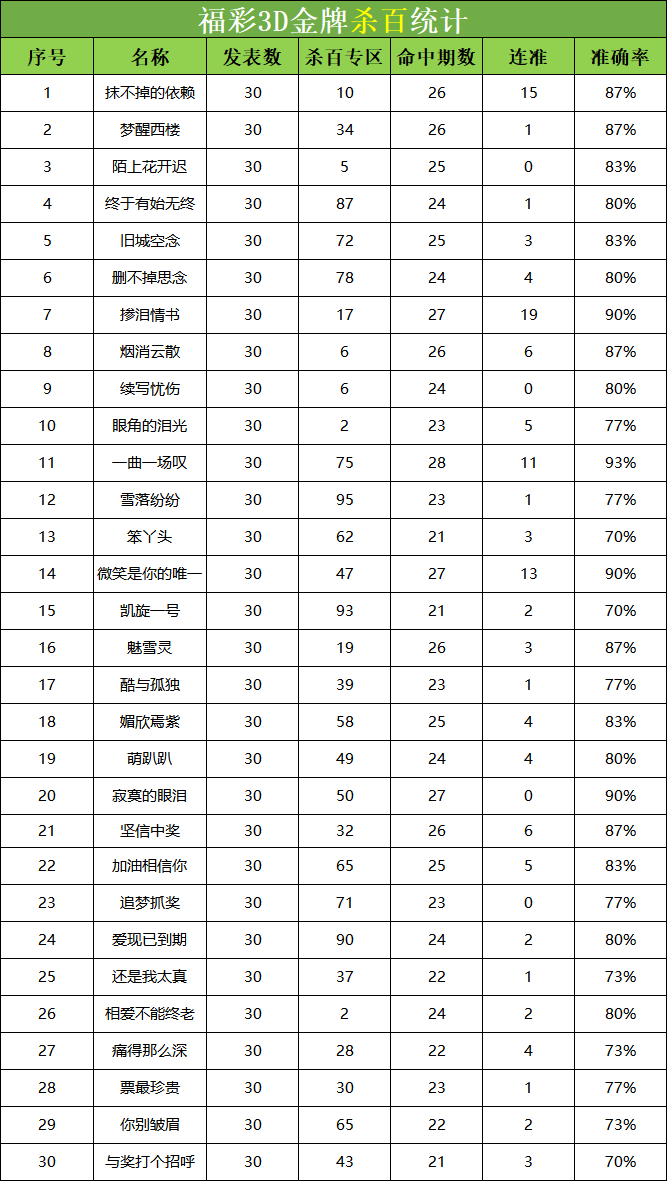 • 福彩3D 26076期杀码 杀百统计