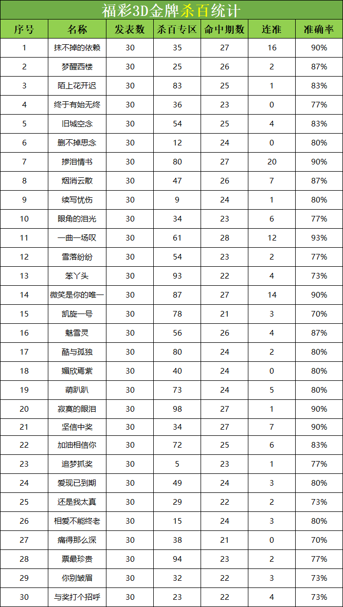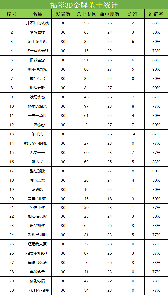 • 福彩3D 26076期杀码 杀百统计