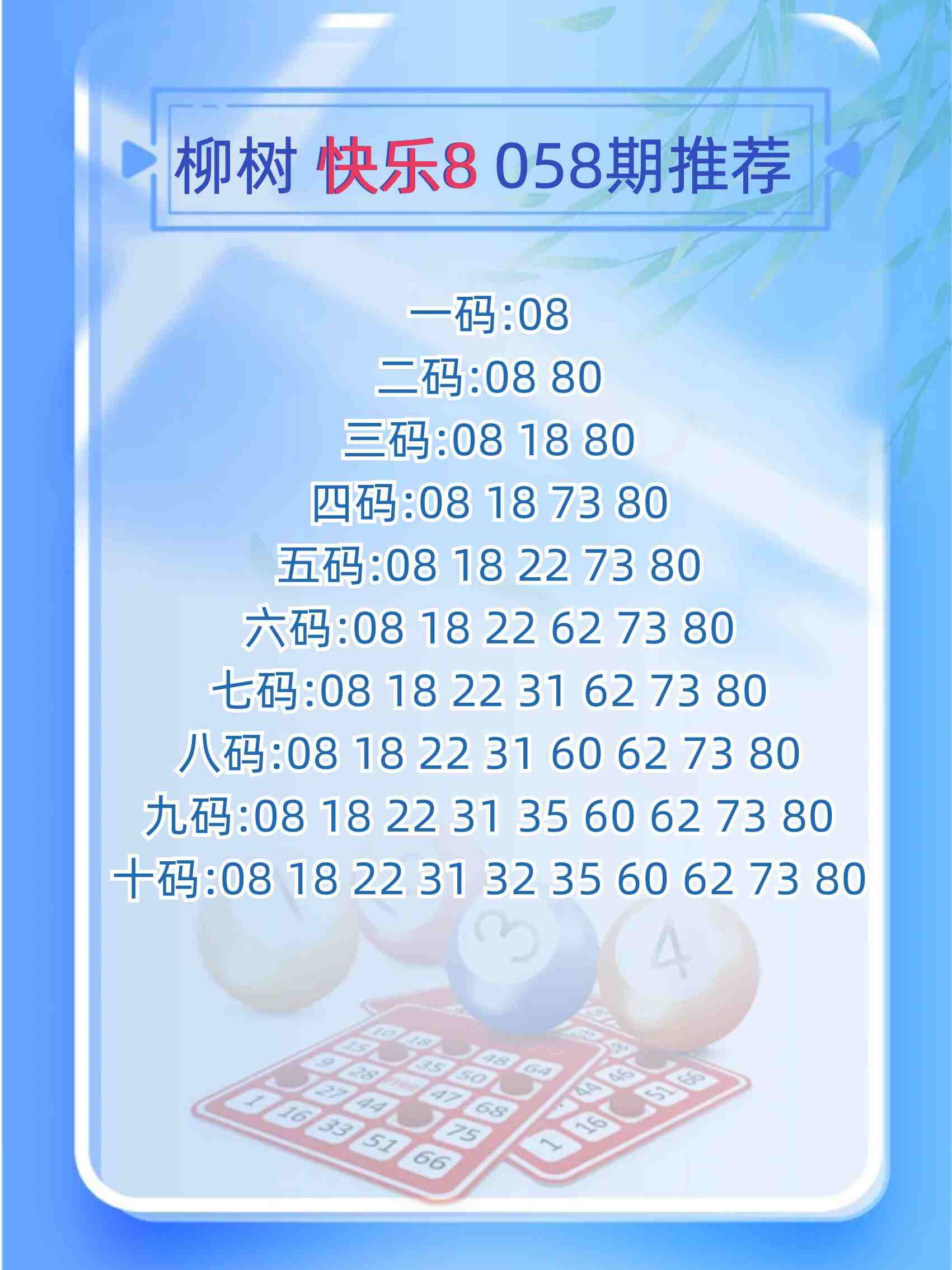 • 快乐8 26058期柳树胆码推荐图谜