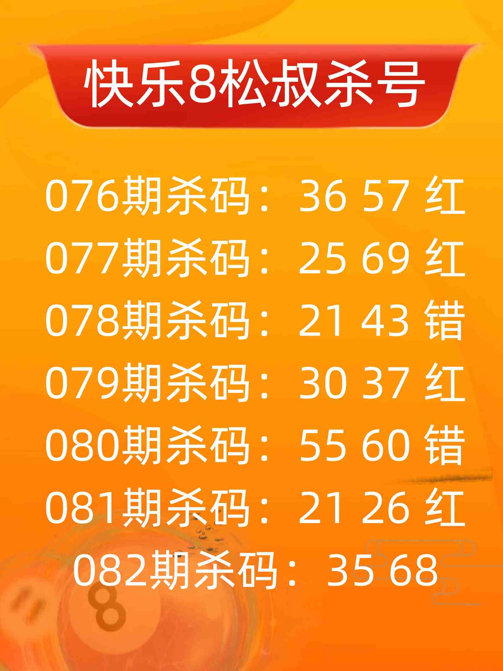 • 快乐8 26082期松叔杀号图