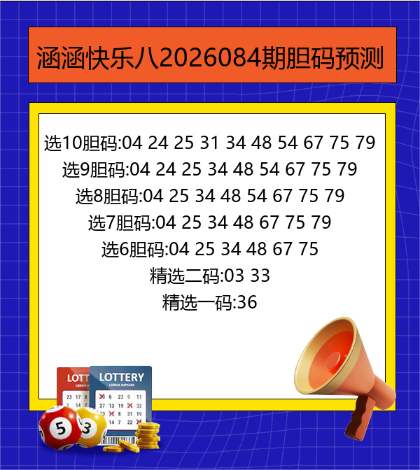 • 快乐8 26084期涵涵胆码图谜