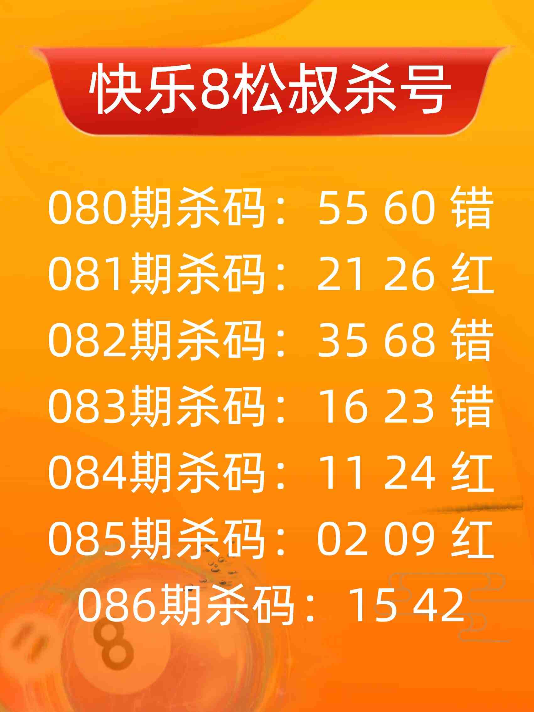 • 快乐8 26086期松叔杀号图