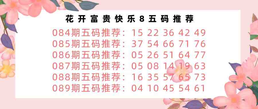 • 快乐8 26089期花开富贵胆码图谜