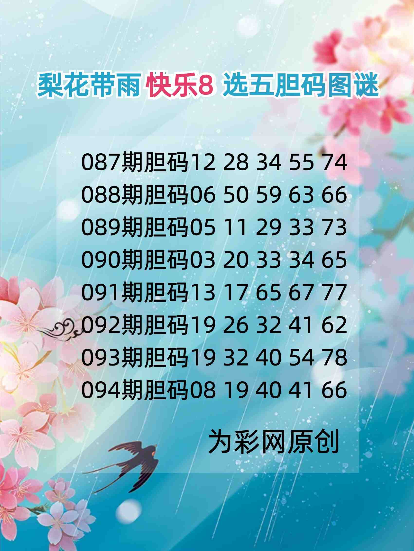 • 快乐8 26094期柳树胆码推荐图谜