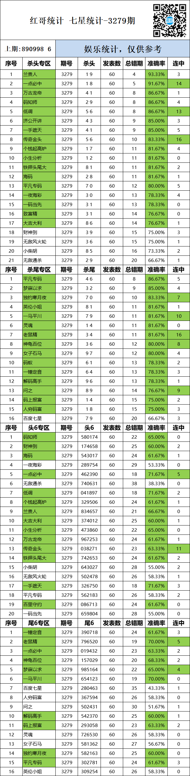 • 3279期:红哥统计