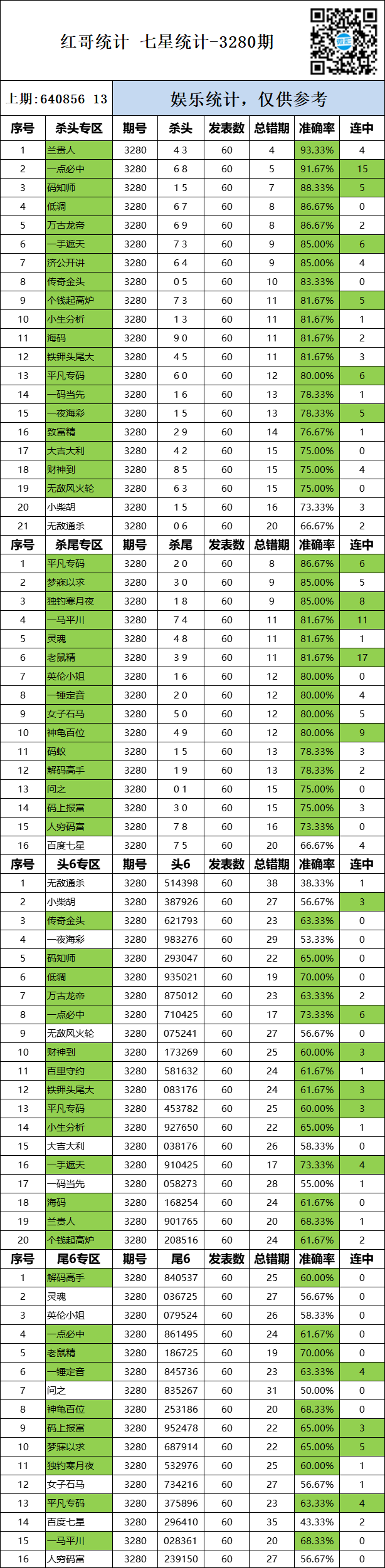 • 3280期:红哥统计