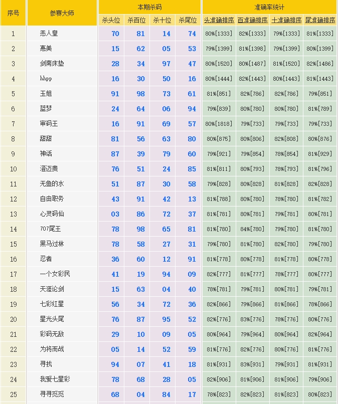 • 3295期:特区杀码统计