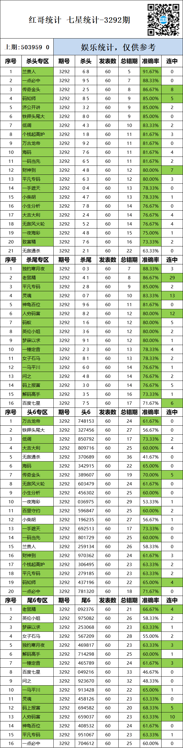 • 3295期:特区杀码统计