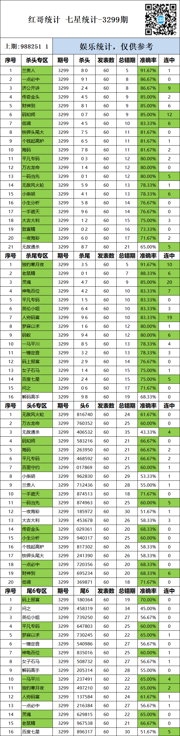 • 3311期:特区杀码统计