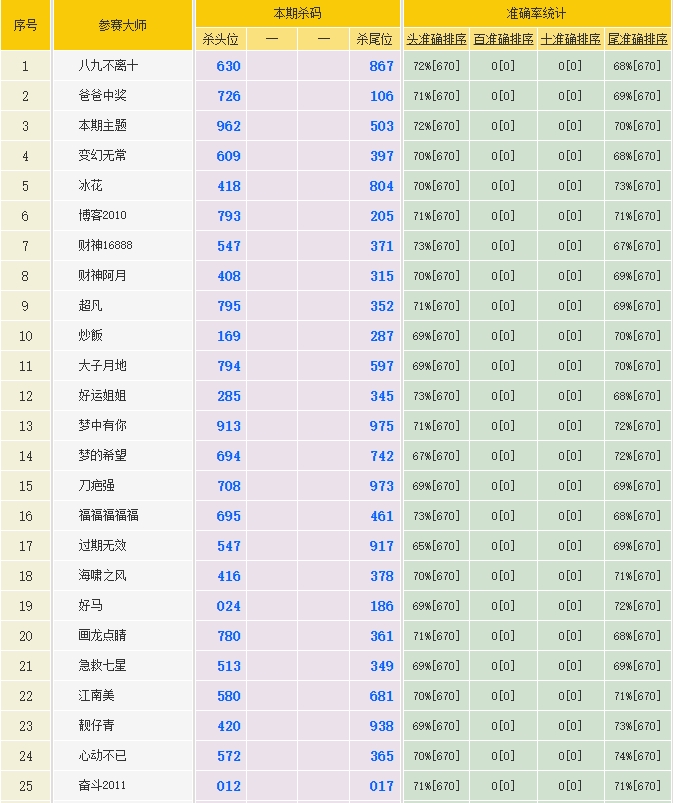 • 3312期:特区杀码统计