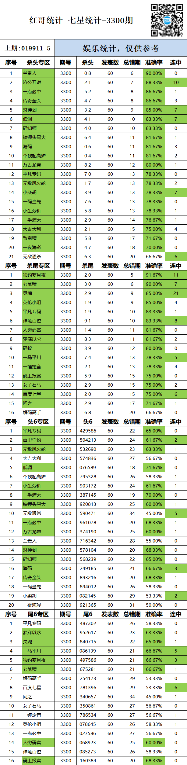 • 3311期:特区杀码统计