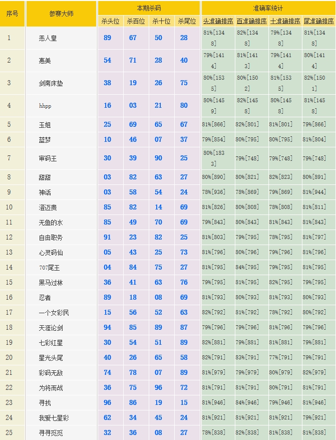 • 3312期:特区杀码统计