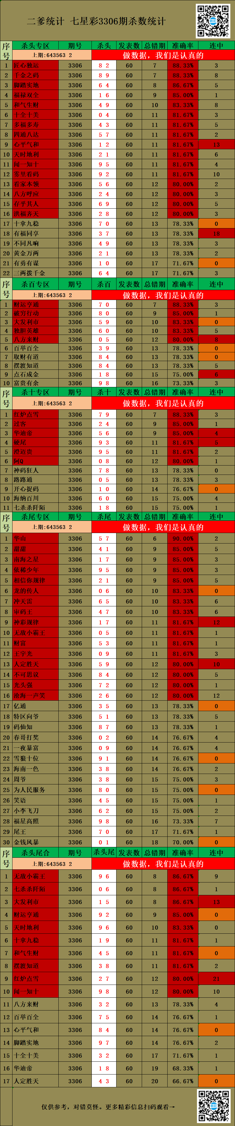 • 3311期:特区杀码统计