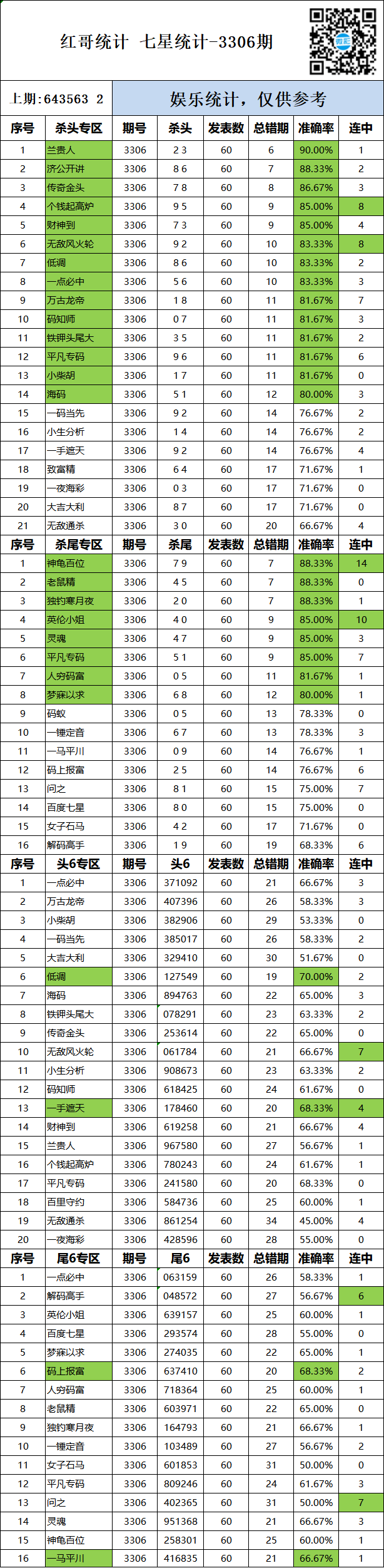 • 3312期:特区杀码统计