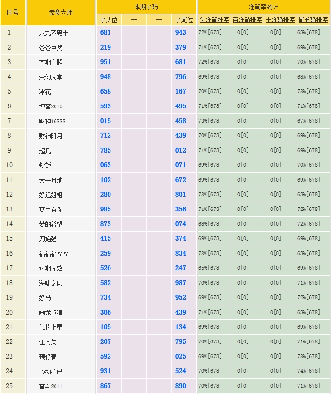• 3312期:特区杀码统计