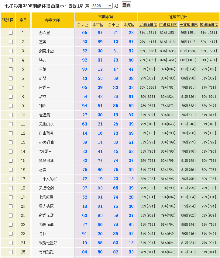 • 3312期:特区杀码统计