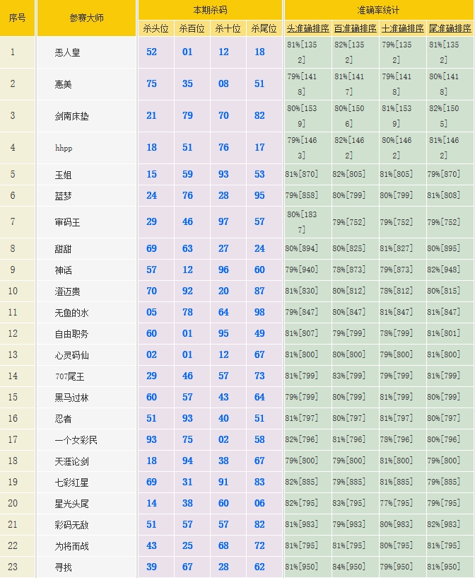 • 3312期:特区杀码统计