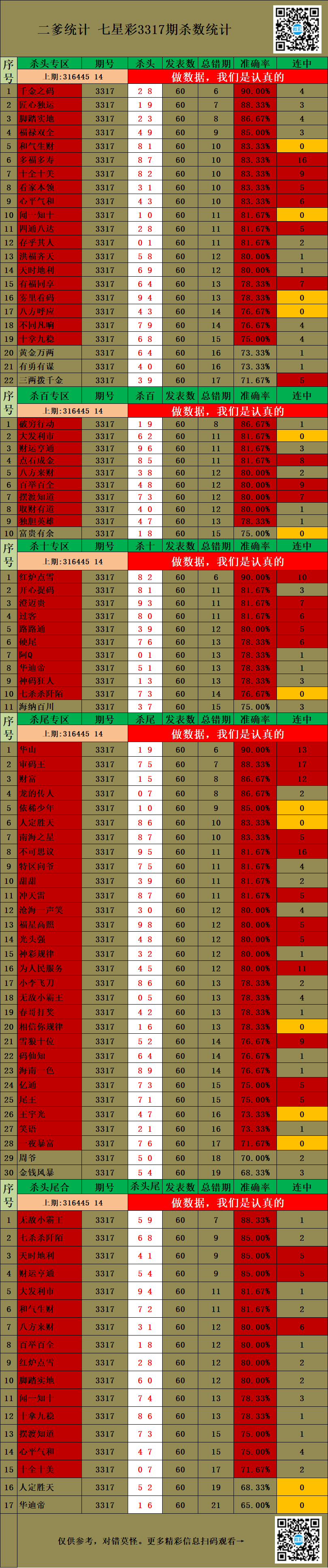• 3316期:特区杀码统计
