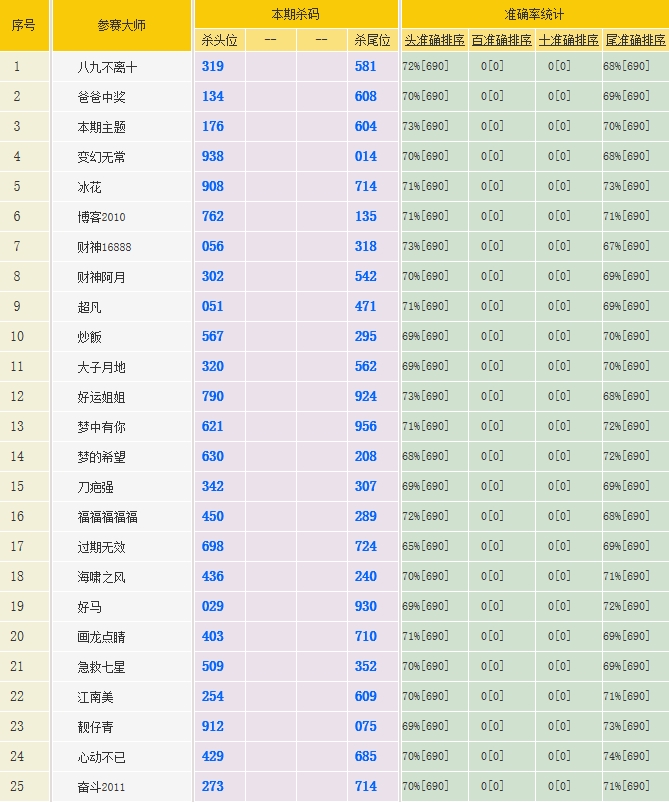 • 七星彩3319期特区杀三头三尾统计