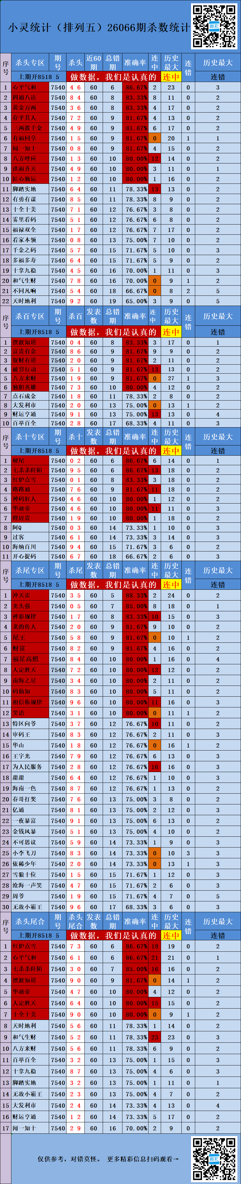 • 排列五26066期胖哥统计