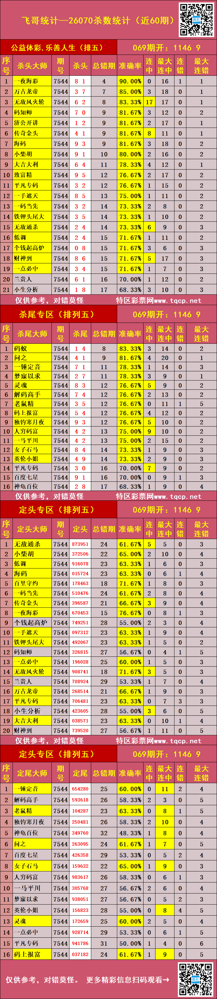 • 排列五26072期胖哥统计