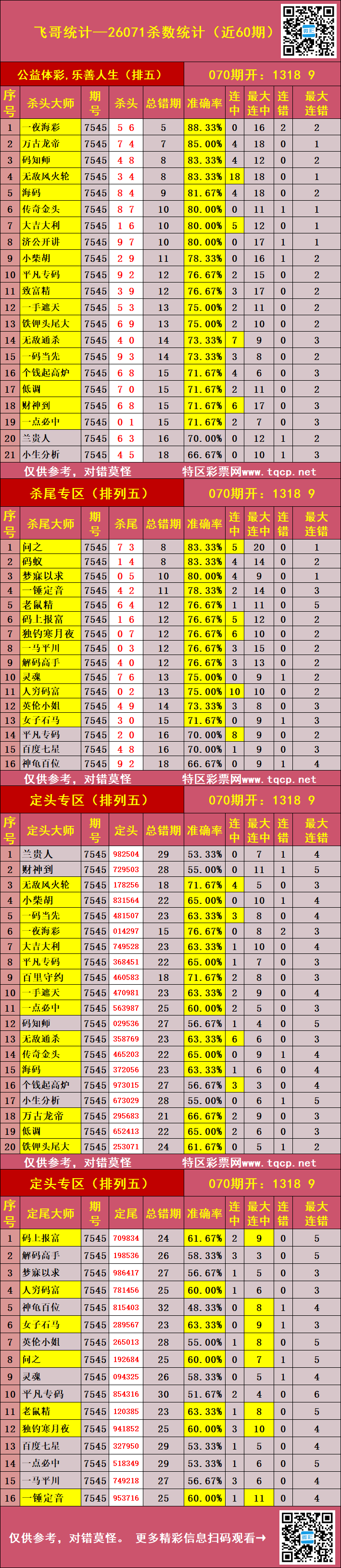 • 排列五26072期胖哥统计