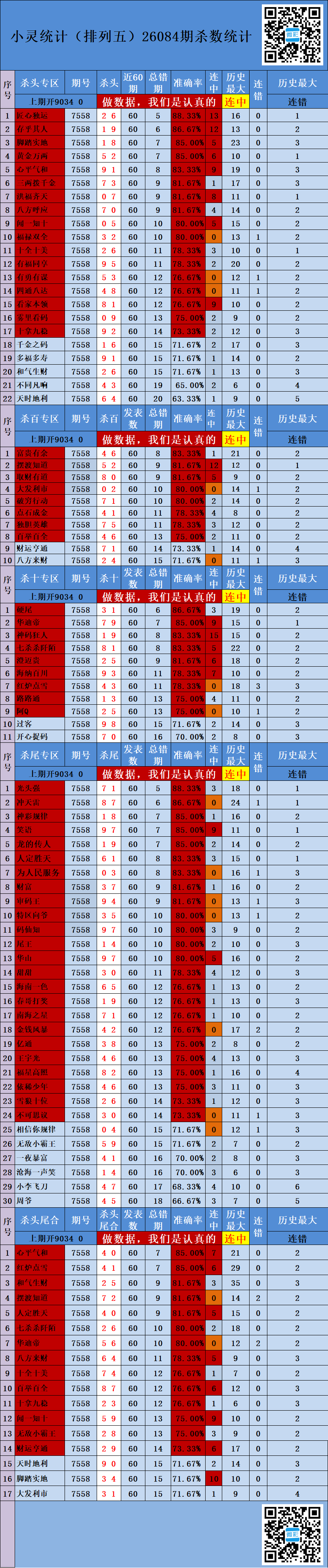 • 排列五26085期胖哥统计