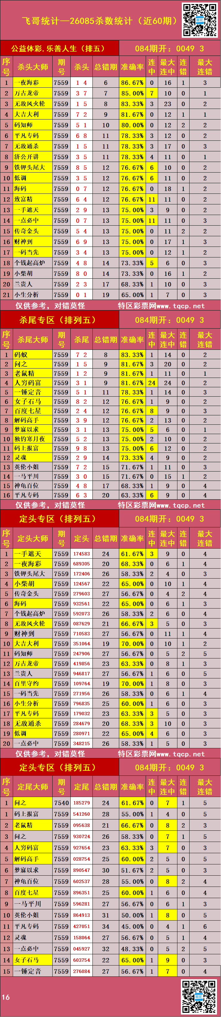 • 排列五26085期胖哥统计