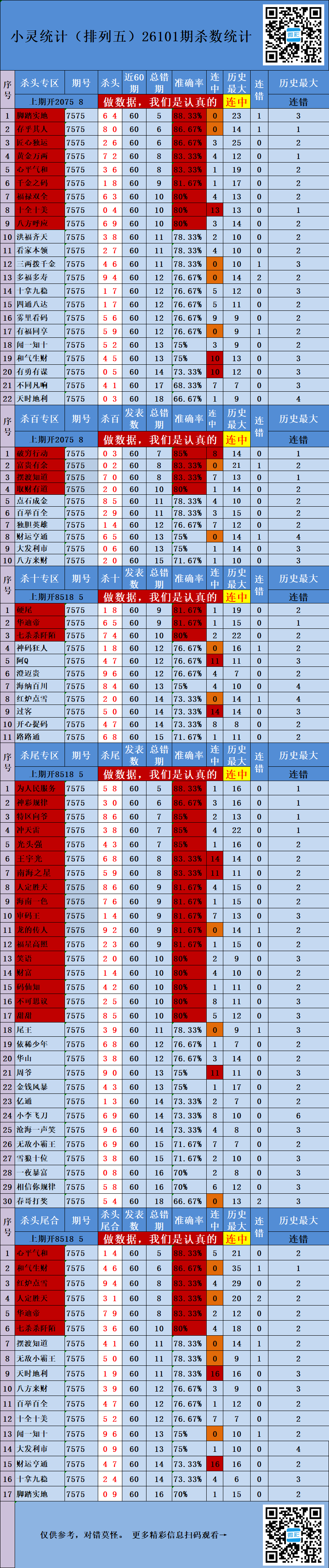 • 26101期:排列出号统计