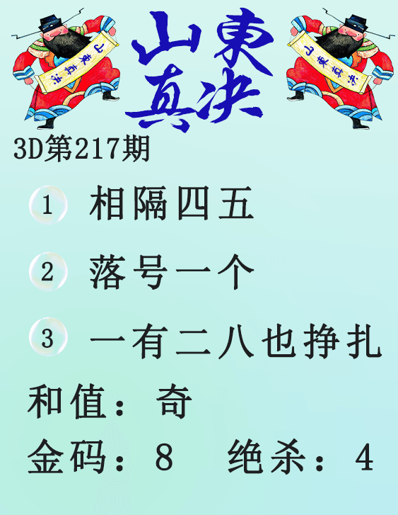 • 26083期: 福彩3D财神精选胆码杀码