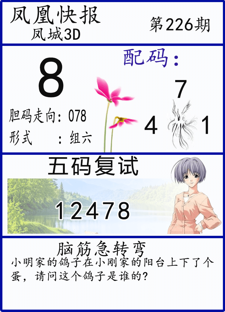 • 25226期: 福彩3D财神精选胆码杀码图