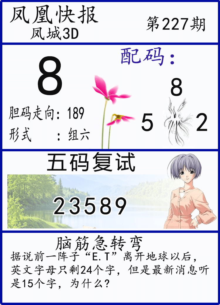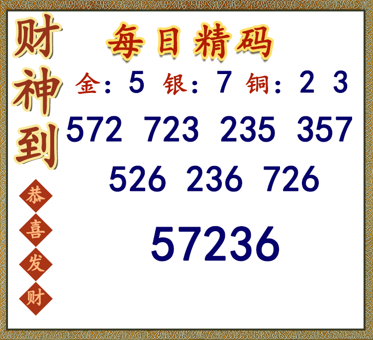 • 25227期: 福彩3D财神精选胆码杀码图