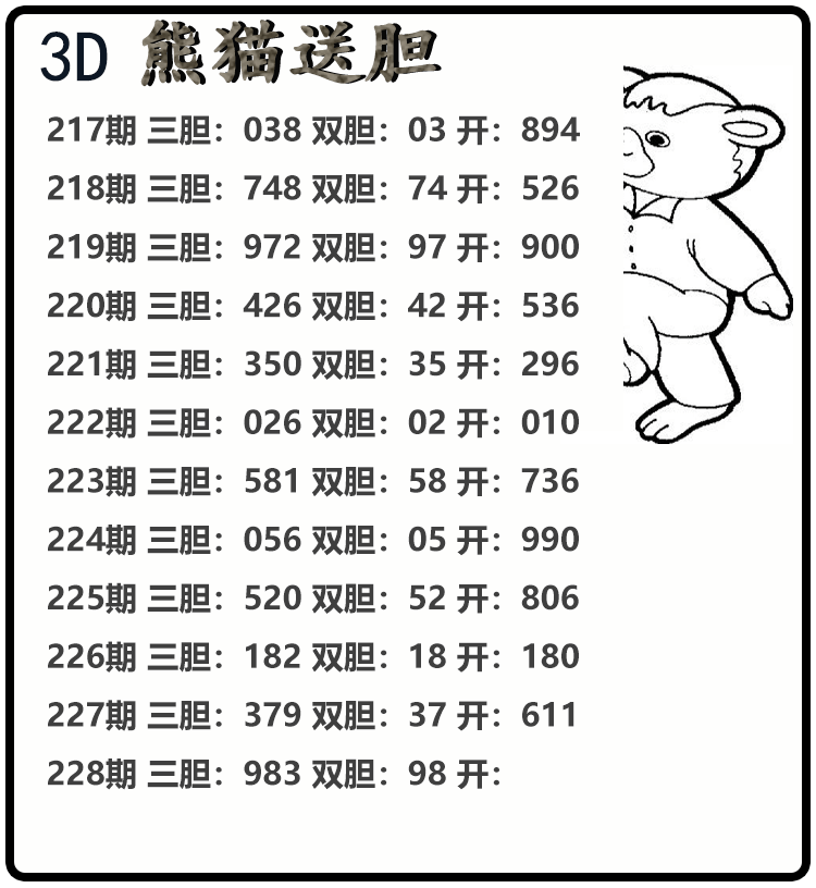 • 25228期: 福彩3D财神精选胆码杀码图
