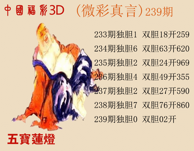 • 26096期: 福彩3D财神精选胆码杀码