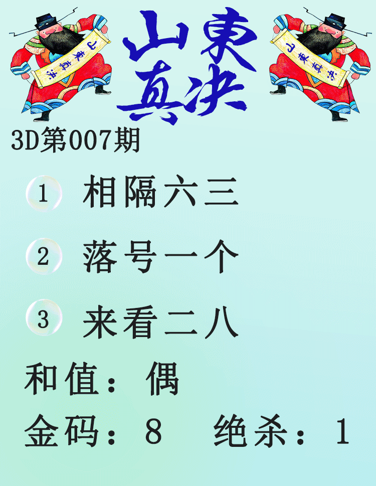 • 3D杀码 3D胆码 3D预测 3D字谜 3D技巧 一句定3码 今日说彩 3D晚秋和值谜 马后炮解太湖 3D太湖钓叟 3D试机号后分析 于海滨一语定胆 3D妖胆图 特邀专家 3D藏机图 3D杀号图 3D统计 3D术语 3D龙胆虎杀 鬼六神算 精华布衣 太湖精品 丹东全图 天中全图 三毛全图 村长全图 大兵全图 佐罗真图 九宝寻码 财神全图 北盟天机 白老全图 红黄蓝报 蝴蝶彩图