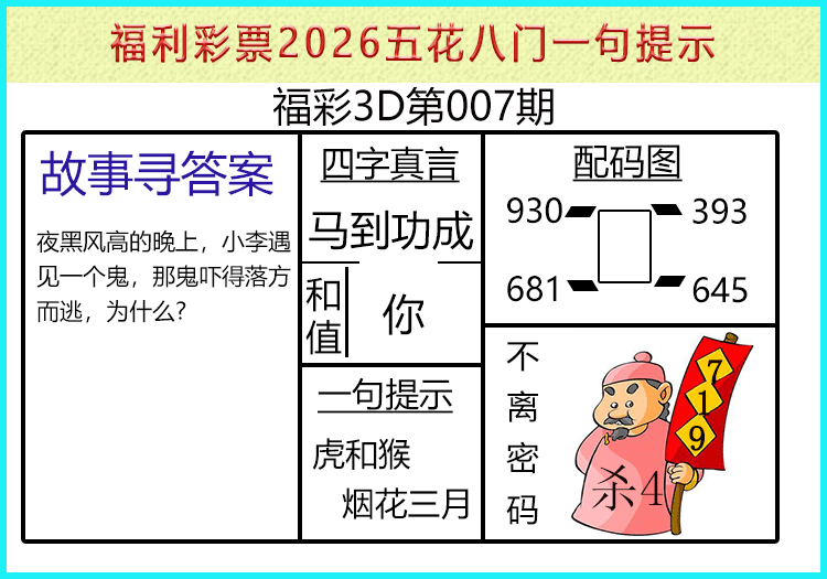 • 26089期: 福彩3D财神精选胆码杀码