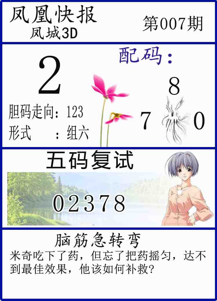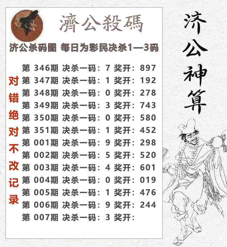 • 26007期: 福彩3D财神精选胆码杀码