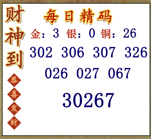 • 26090期: 福彩3D财神精选胆码杀码